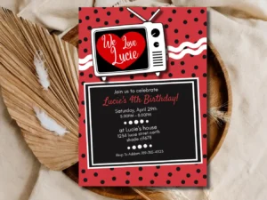 Retro 50’s Polka Dot Birthday Invitation. Black, White & Red Polka Dot