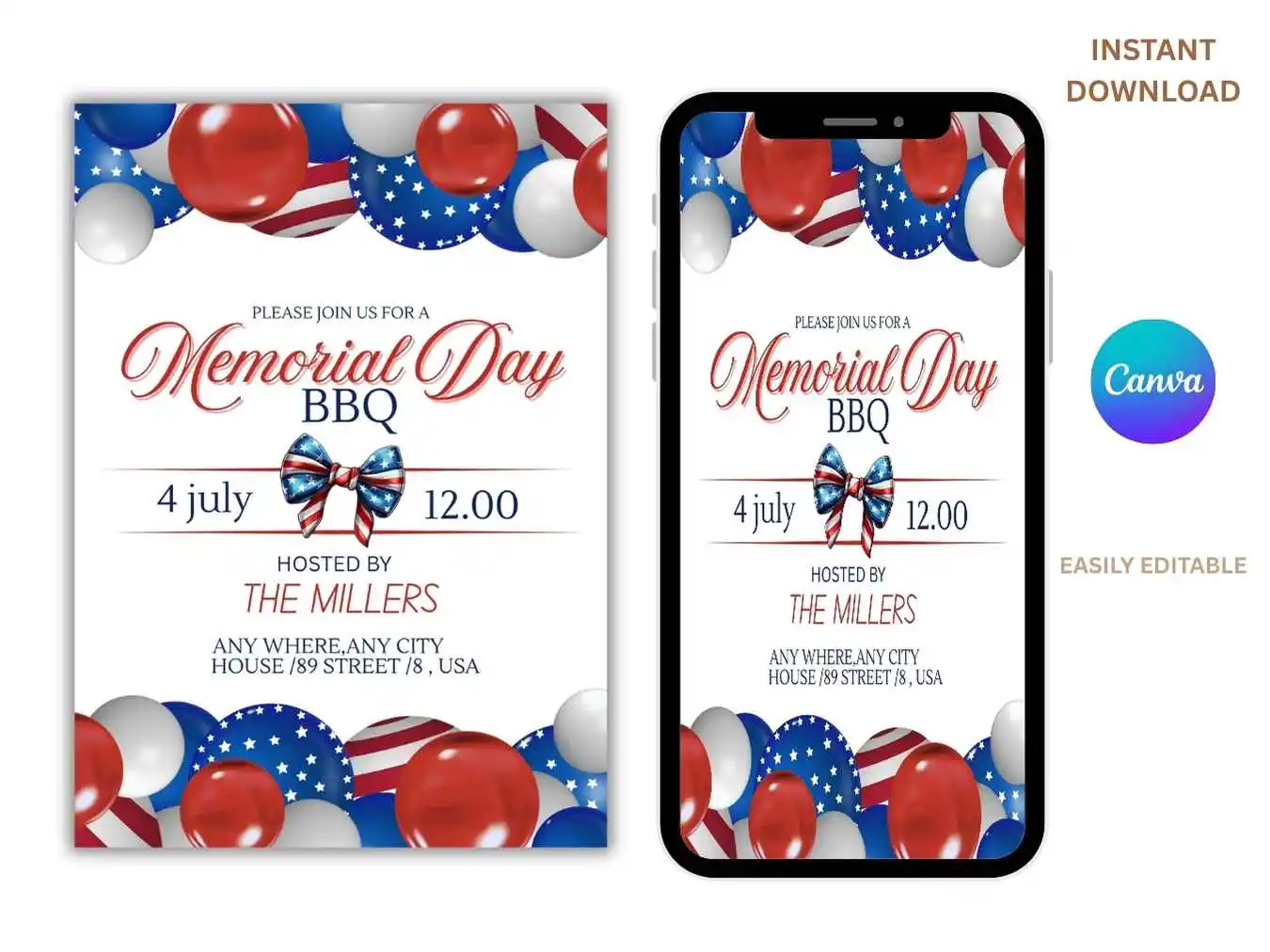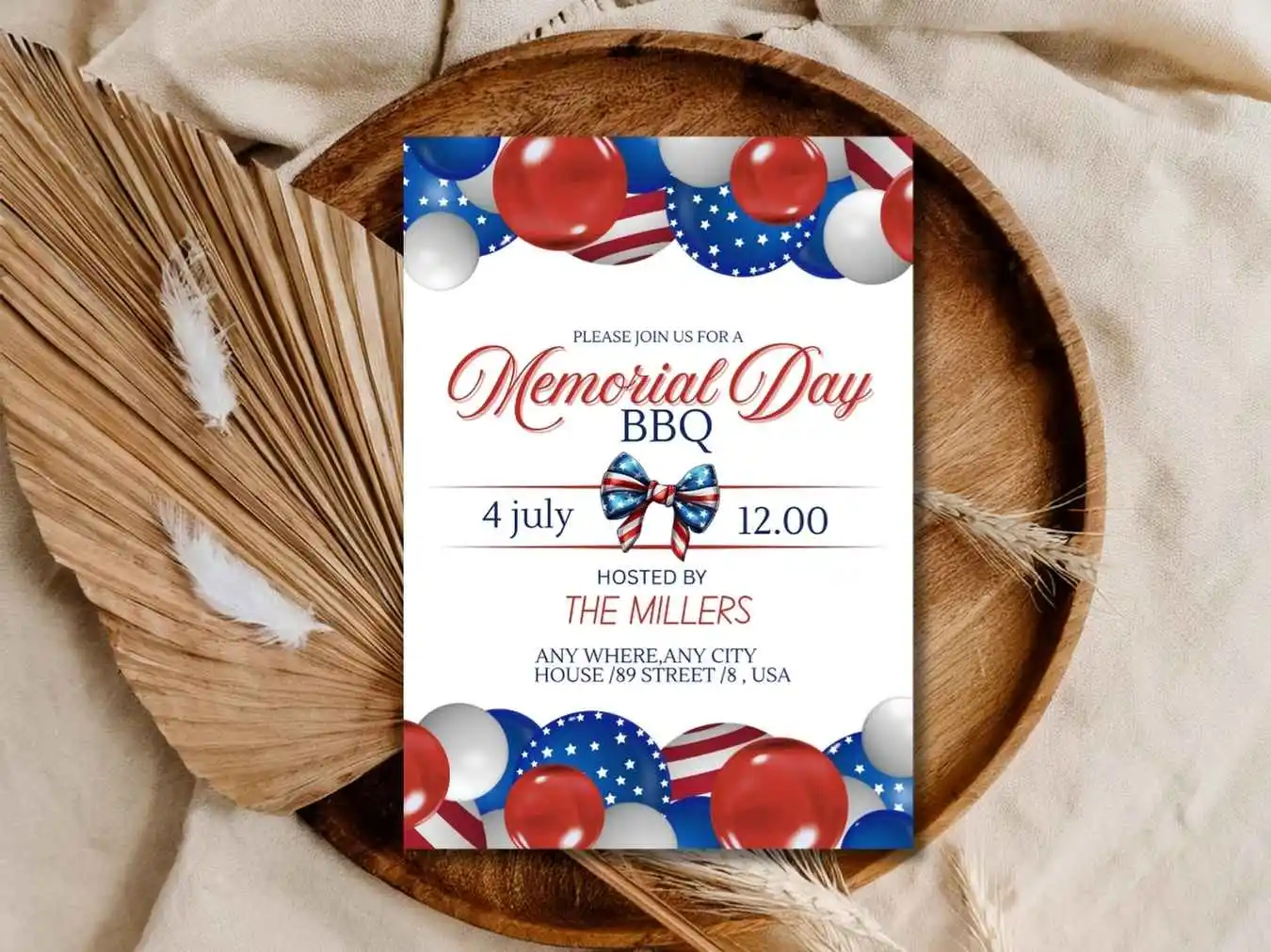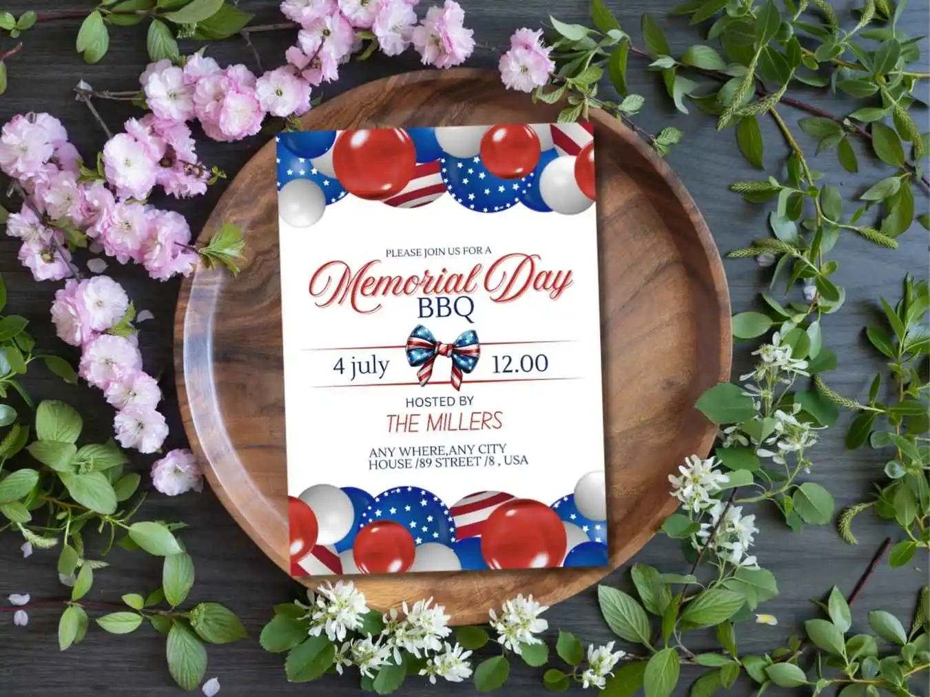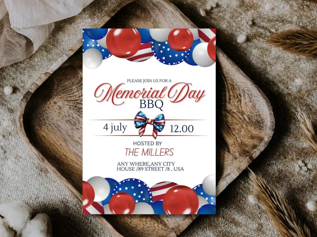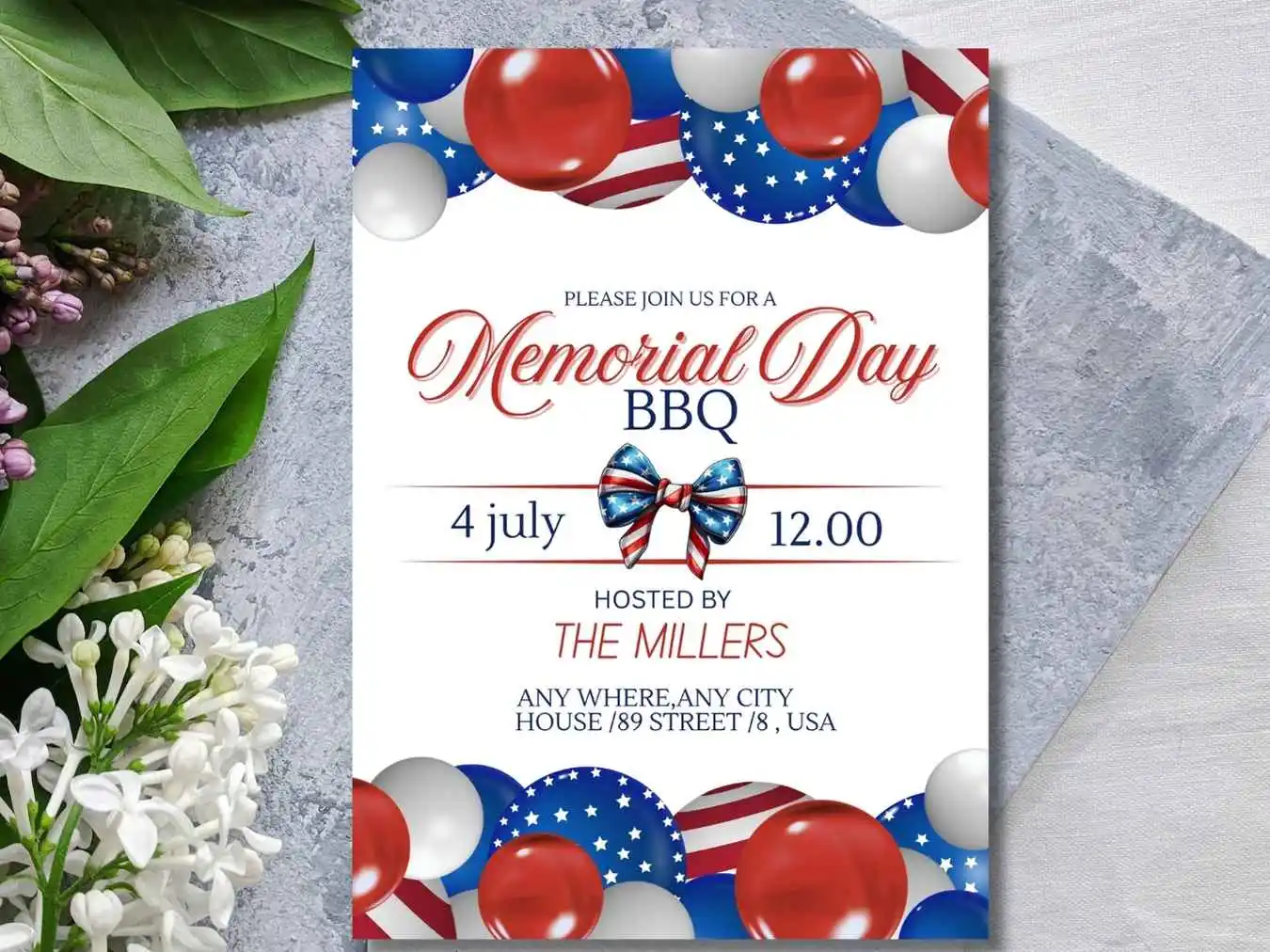4Th Of July Patriotic Day Invitation, Memorial Day Invitation Template
