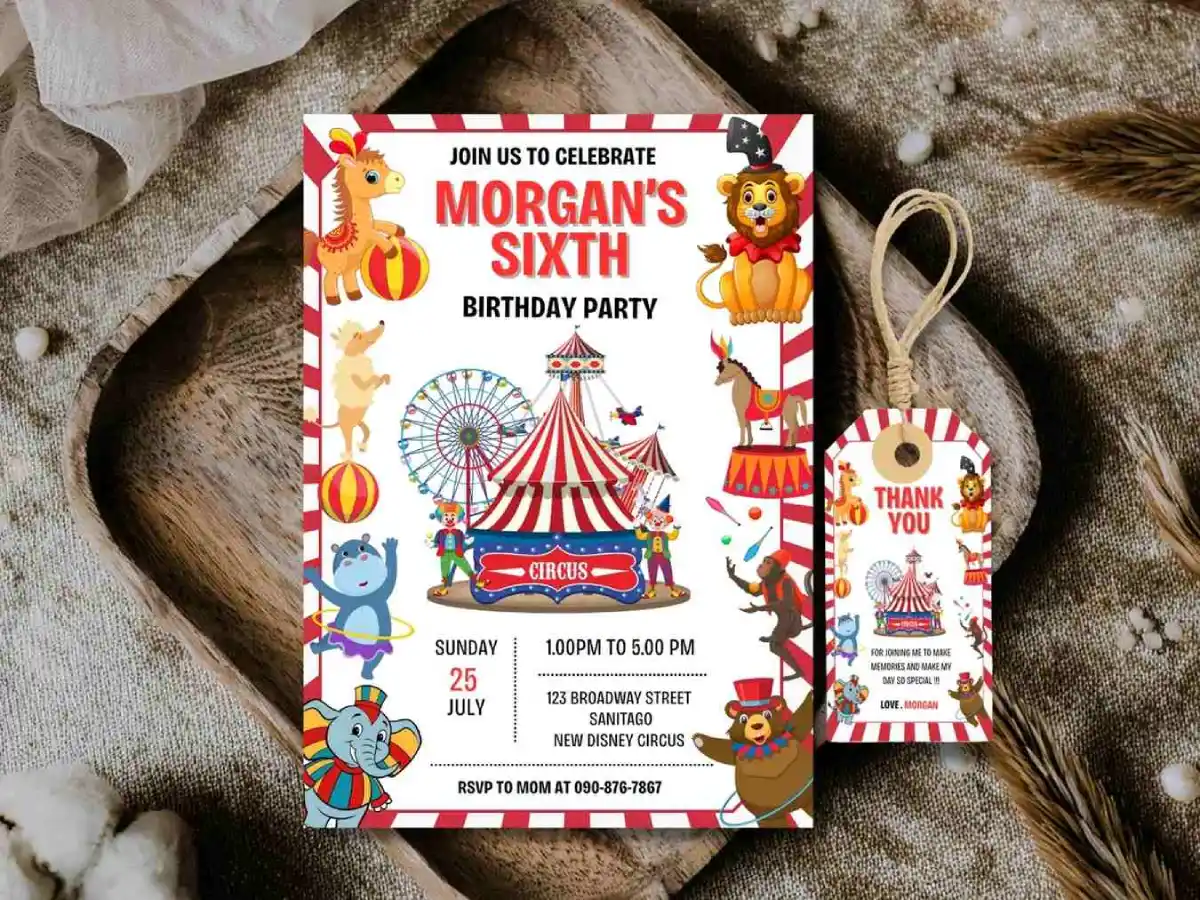 Add Some Charm And More Fun To Your Little One’s Special Day By Using This Carnival Circus Invitation . Add More  Colour , Fun And Touch Of Magic In Your Event .This Invitation Is Especially Designed For Kids Who Loved Carnival Circus And Invitation Theme Is Based On Carnival Animals And Element