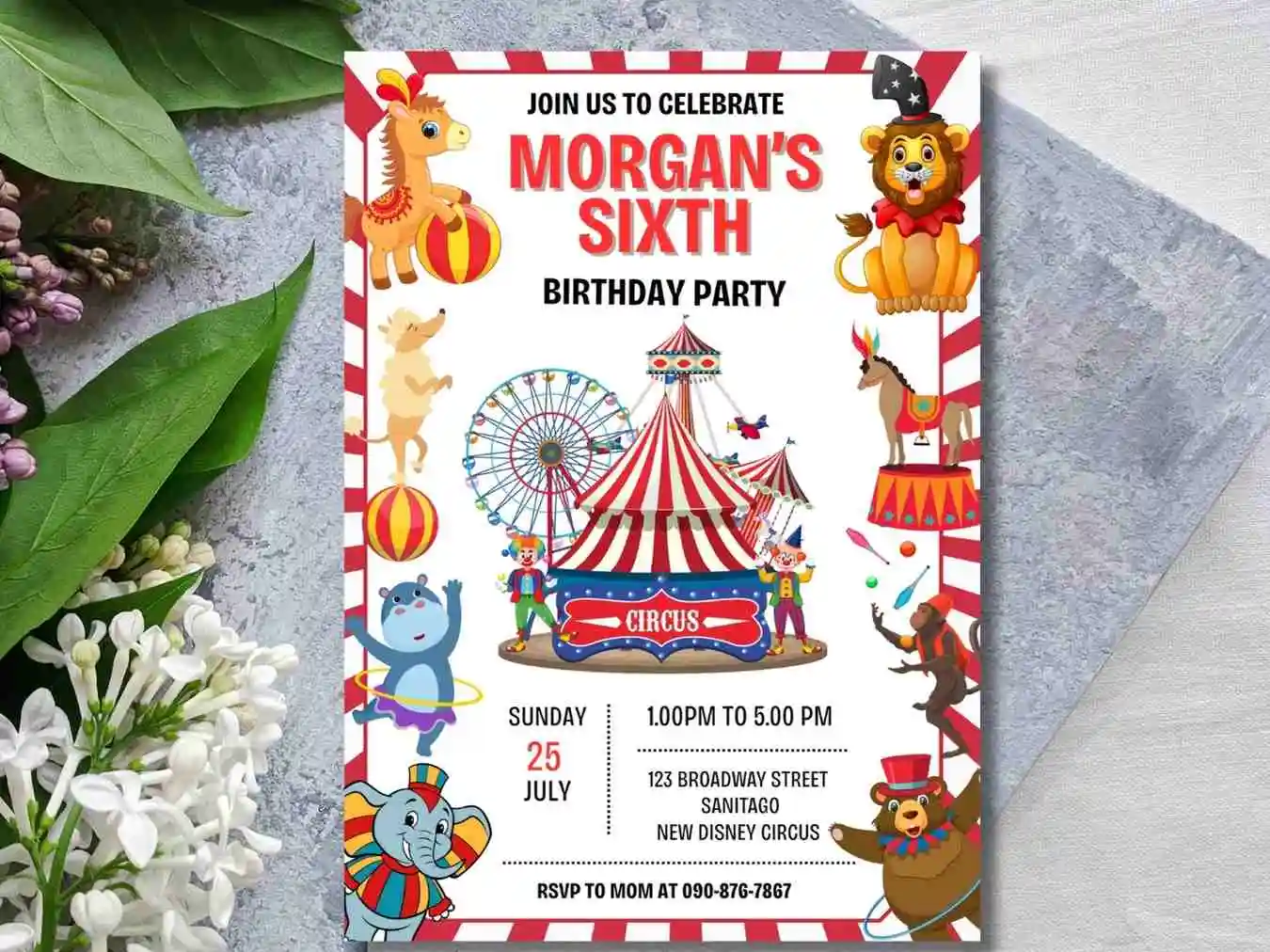 Circus Theme Kids Birthday Party Invitation , Carnival Circus 5TH Birthday invitation