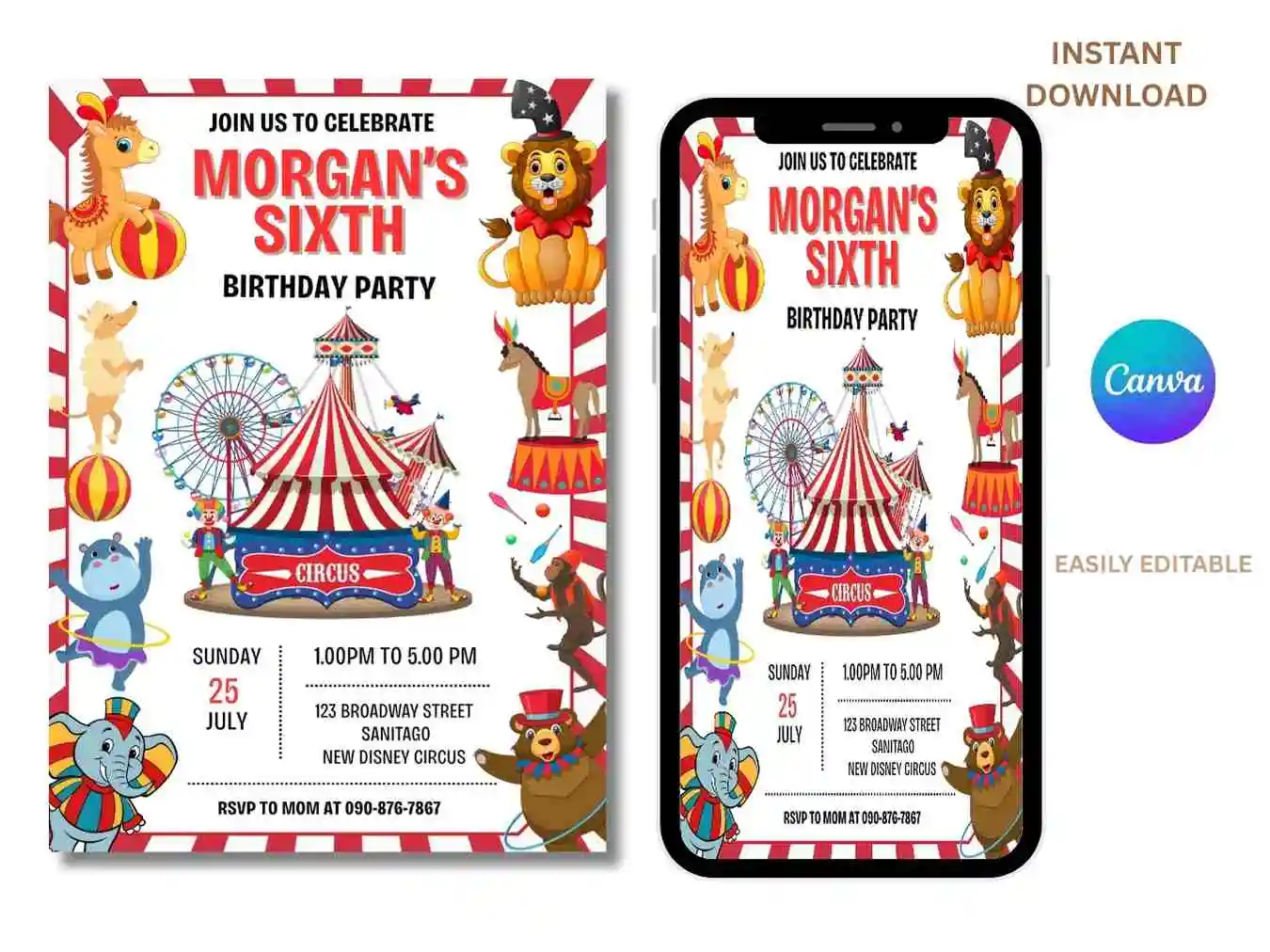Be the first to review “Circus Theme Kids Birthday Party Invitation , Carnival Circus 5TH Birthday invitation”