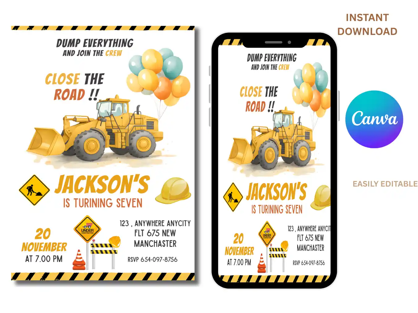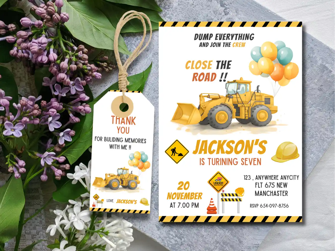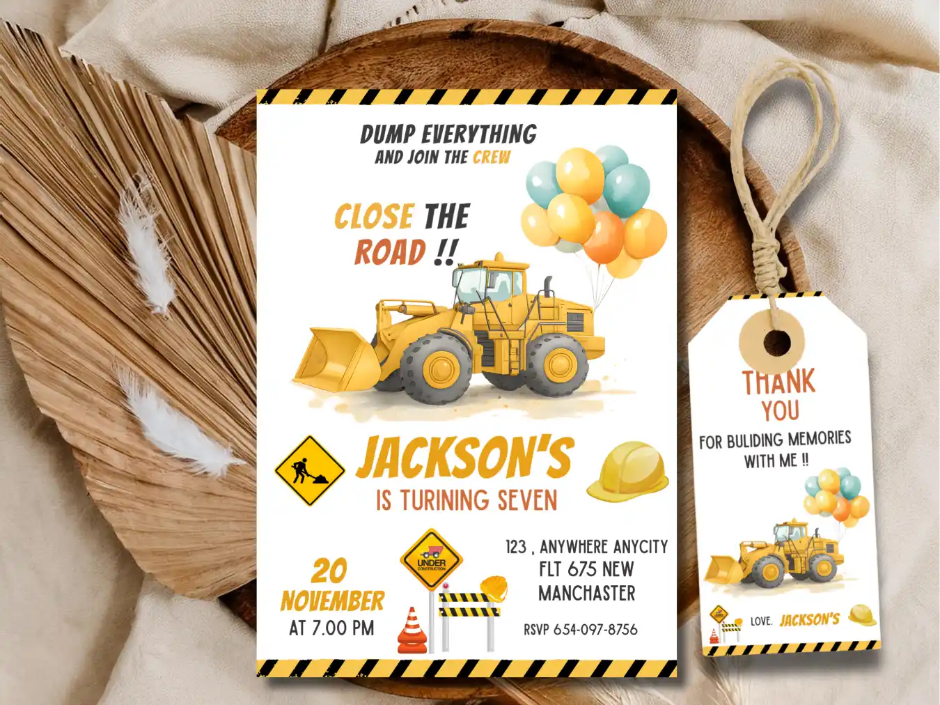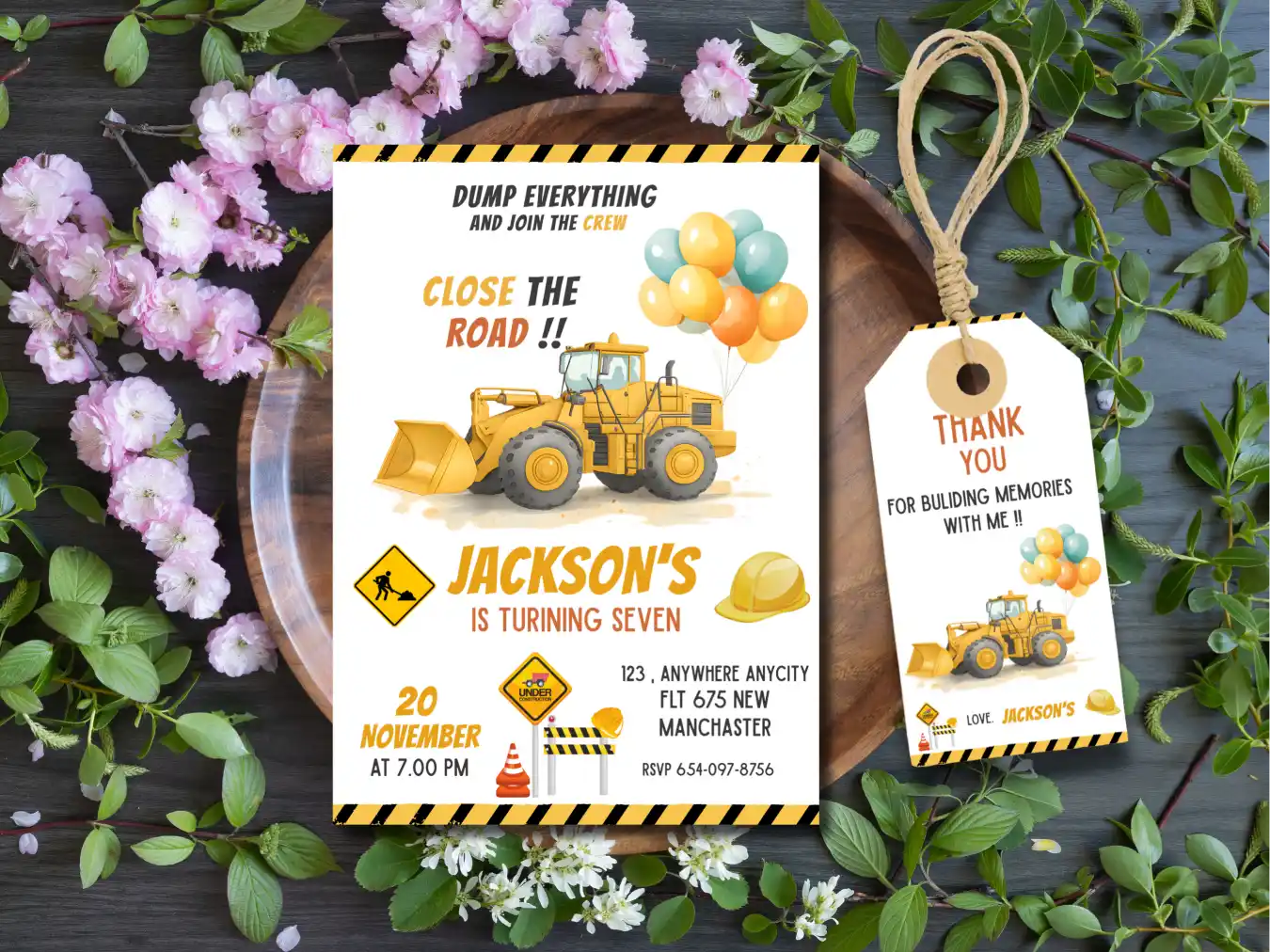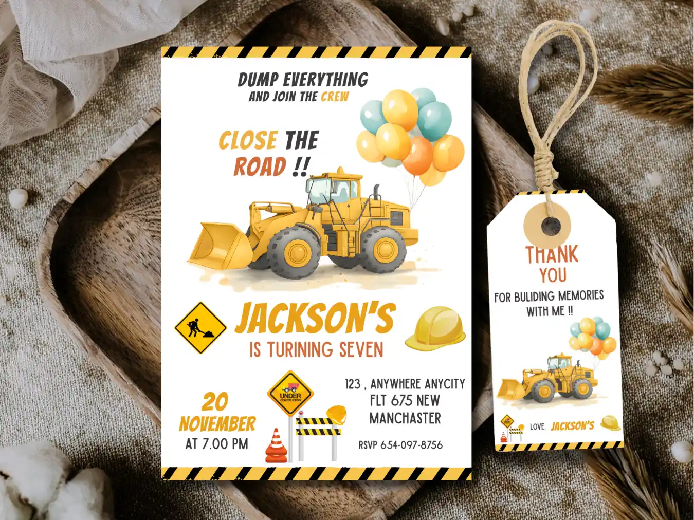 Under Construction Birthday Invitation Is Perfect For Your Little One Birthday Party . Its Gives Charm To Your Little One Birthday Event . This Birthday Invitation Is Especially Design For Kids Who Loves construction Trucks