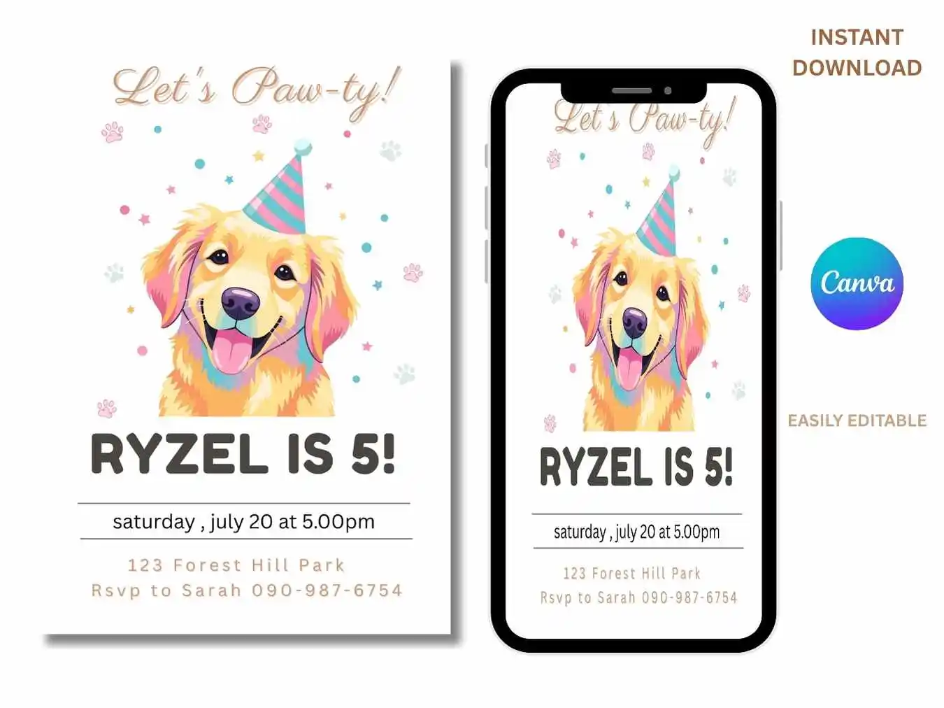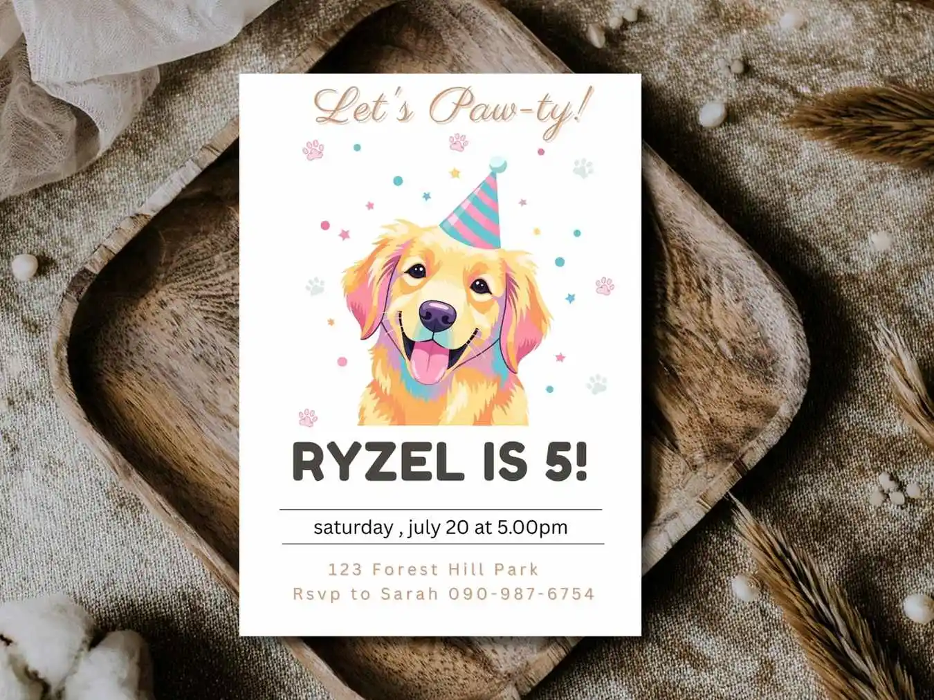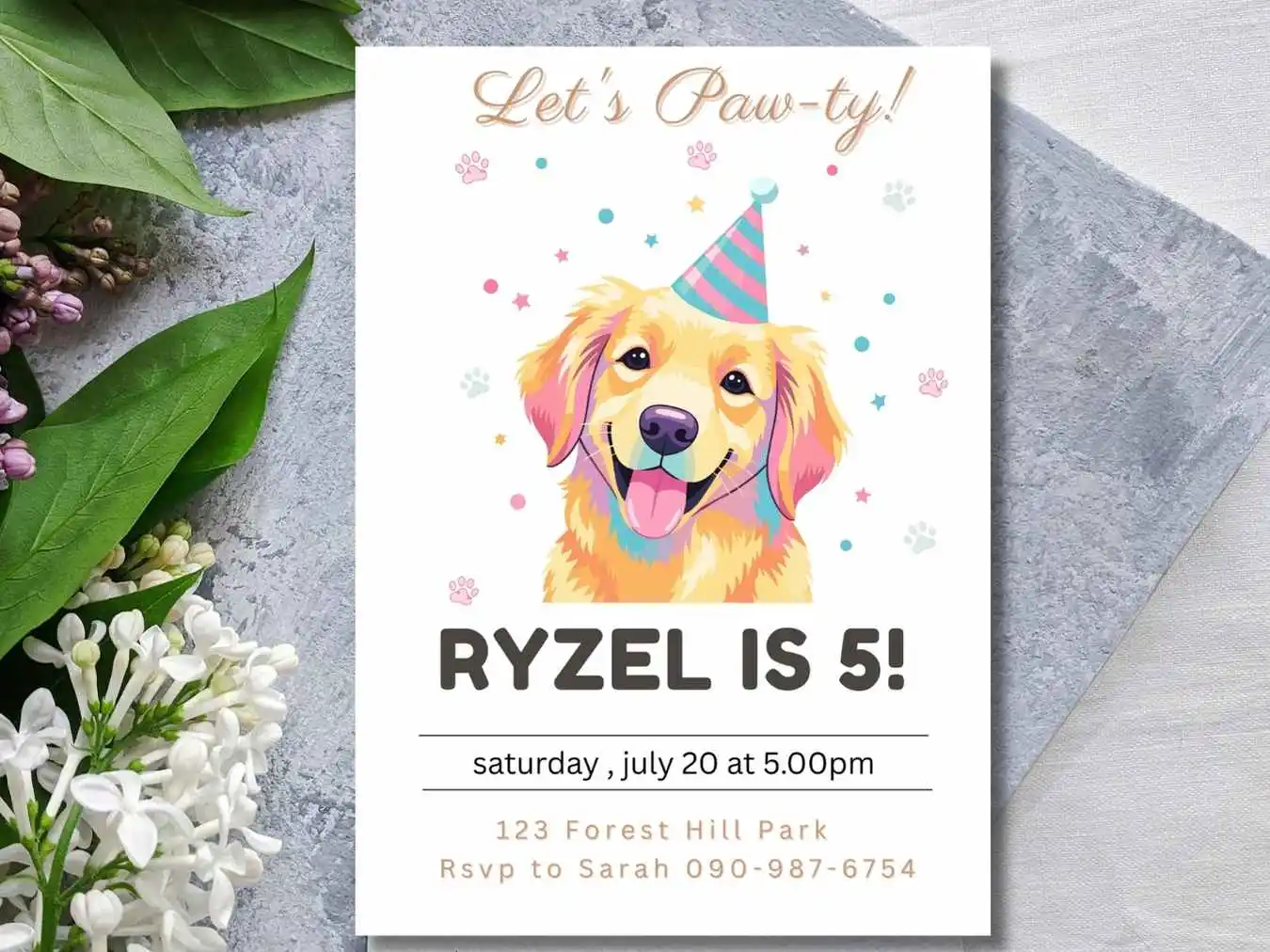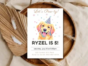 Dog Lover’s Birthday Invitation, Let’s Party Kids Birthday Invitation