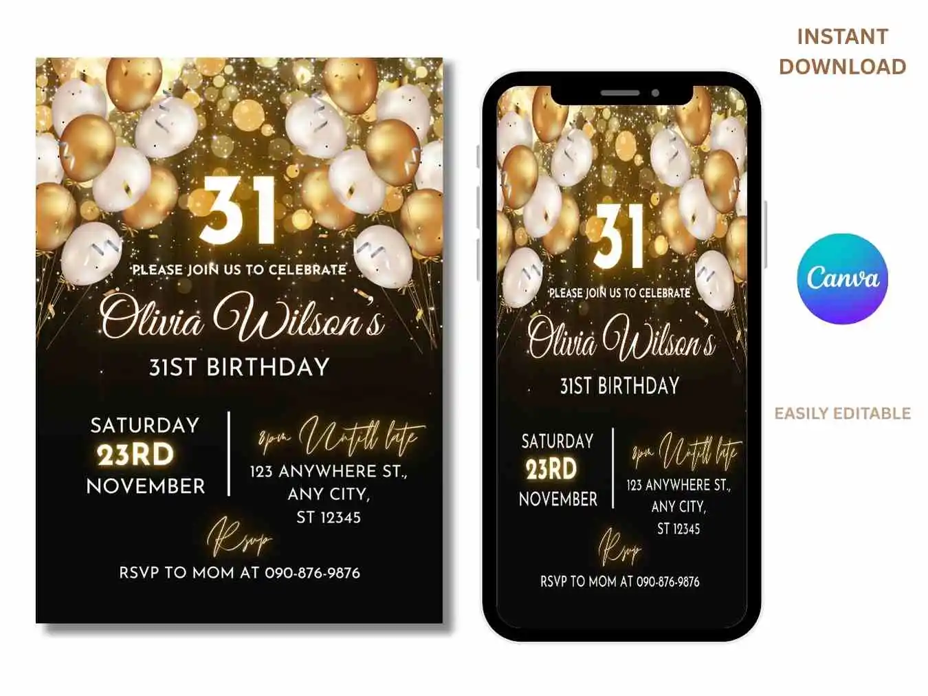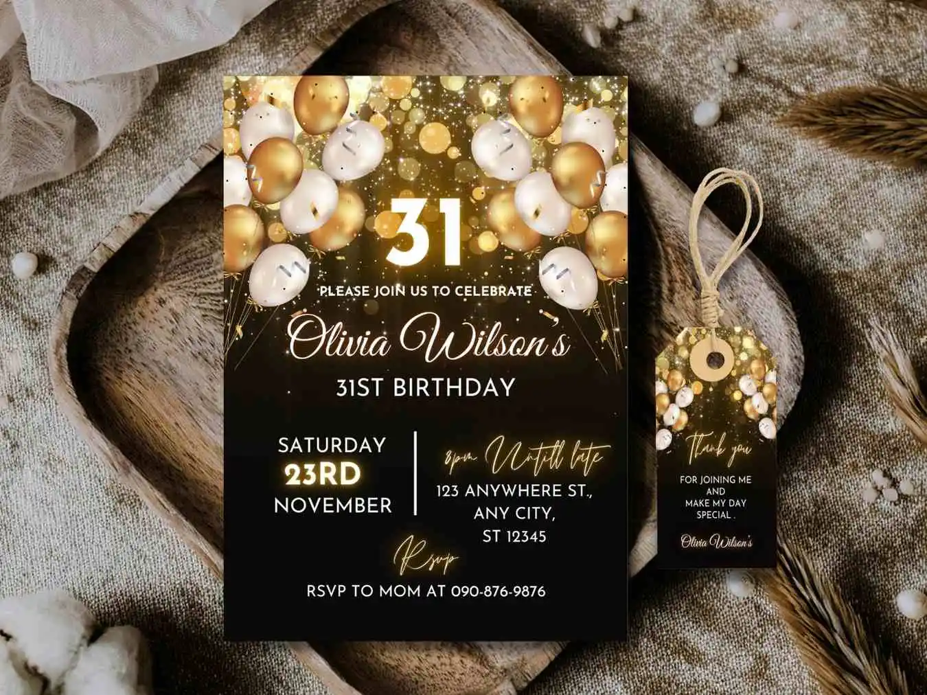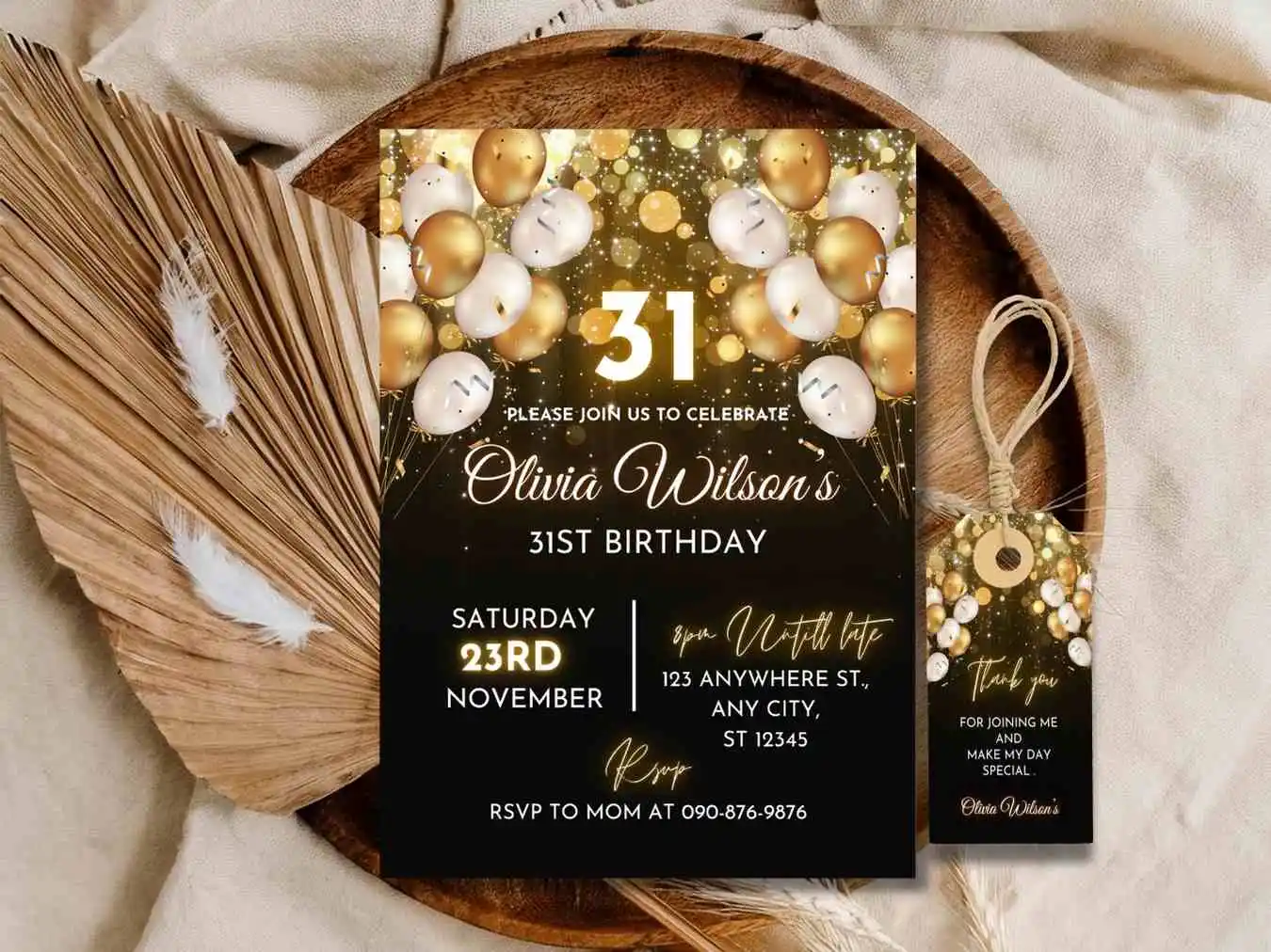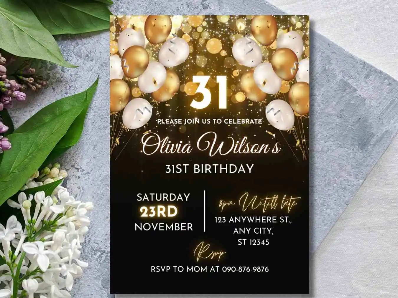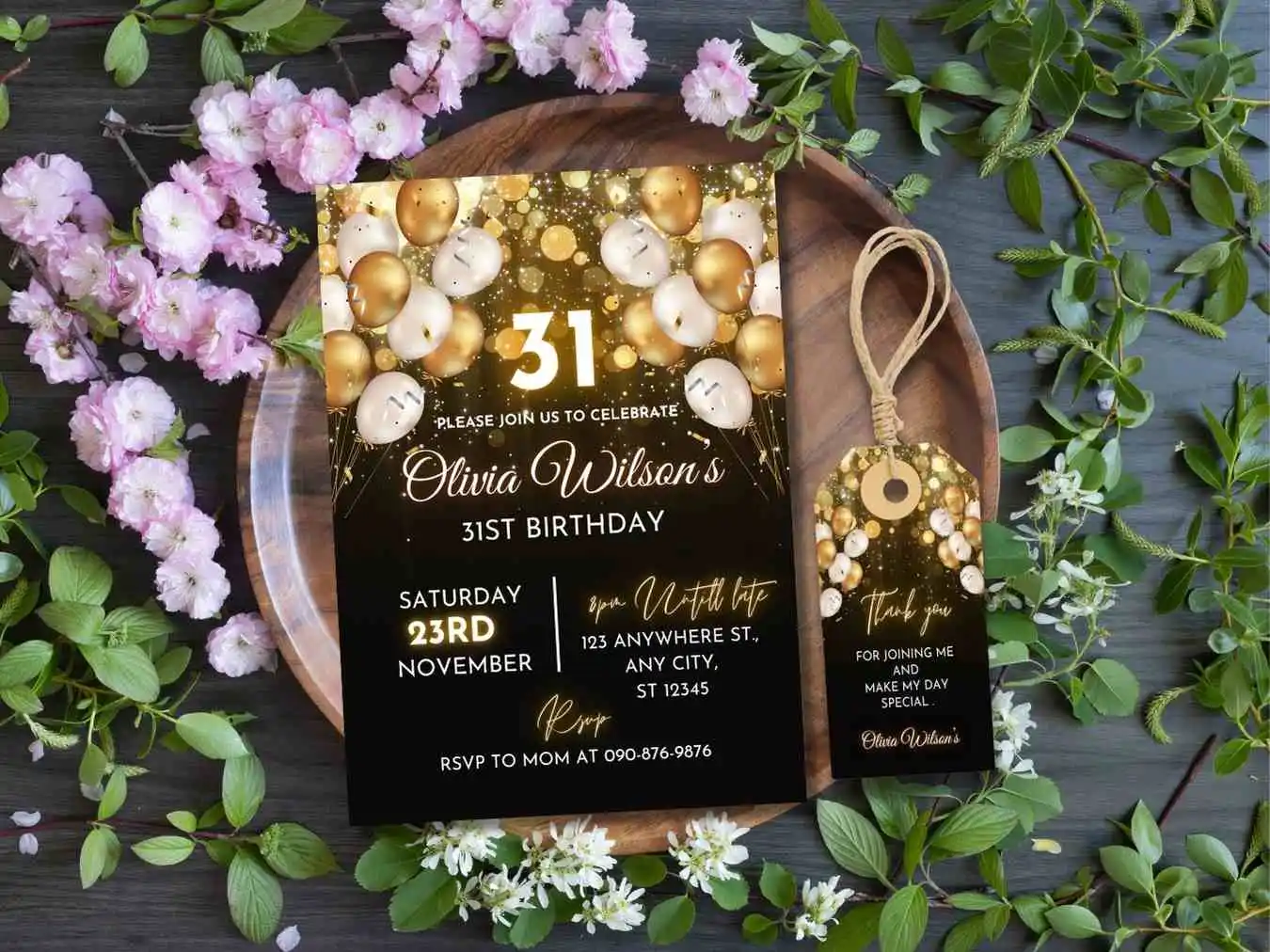 Elegant Black And Golden Birthday Invitation , 31st Birthday Invitation