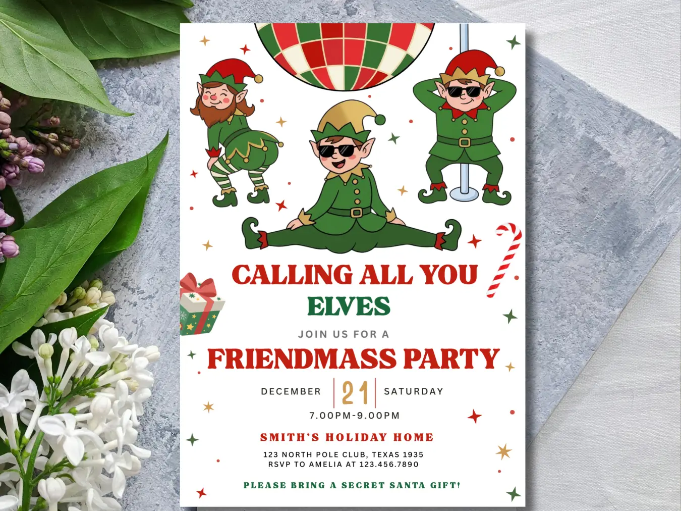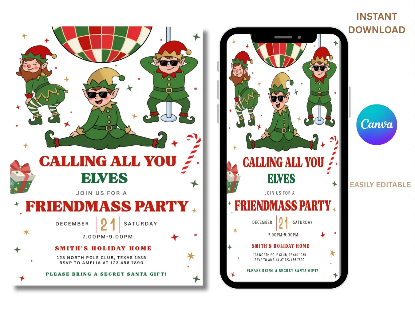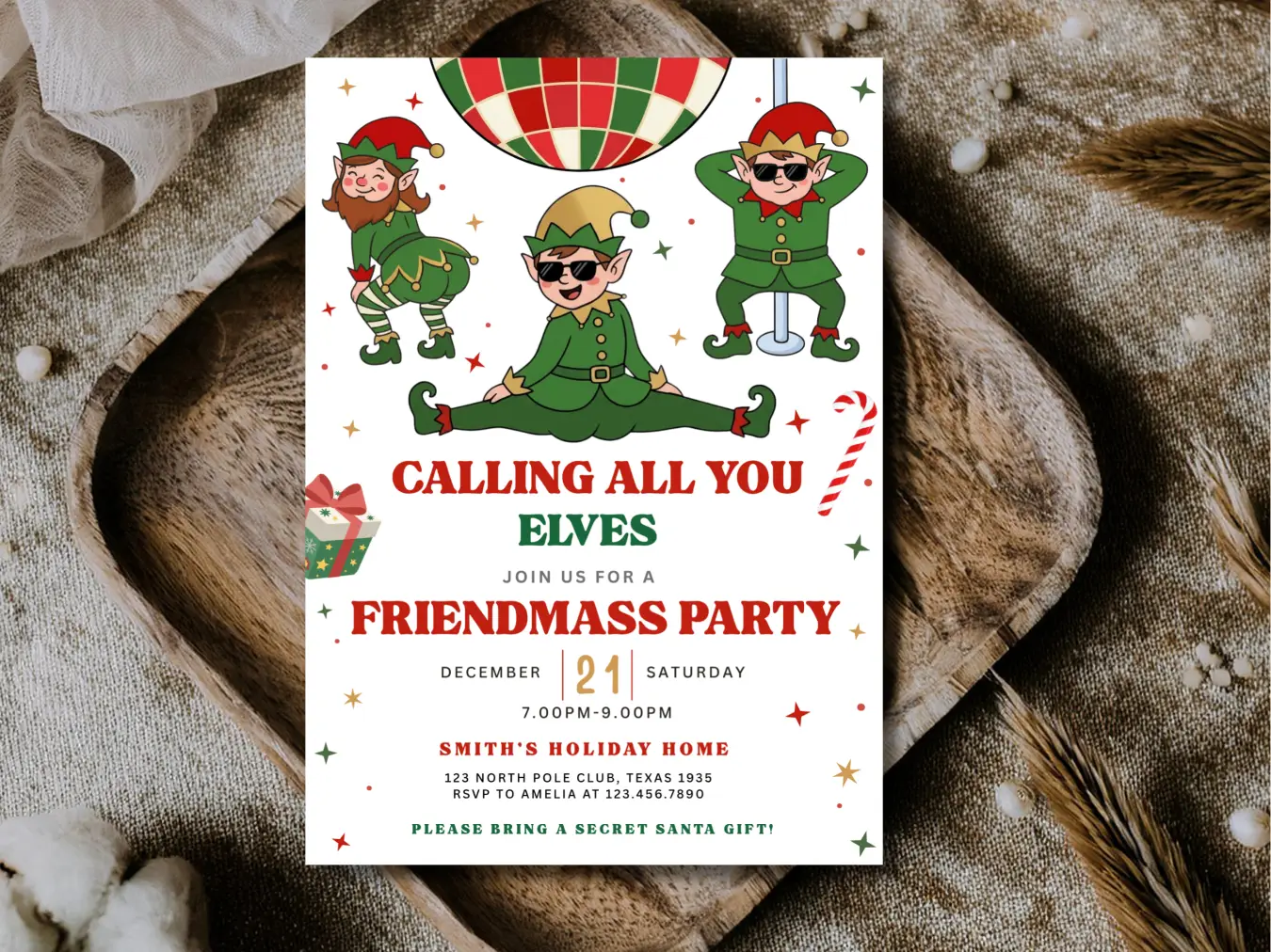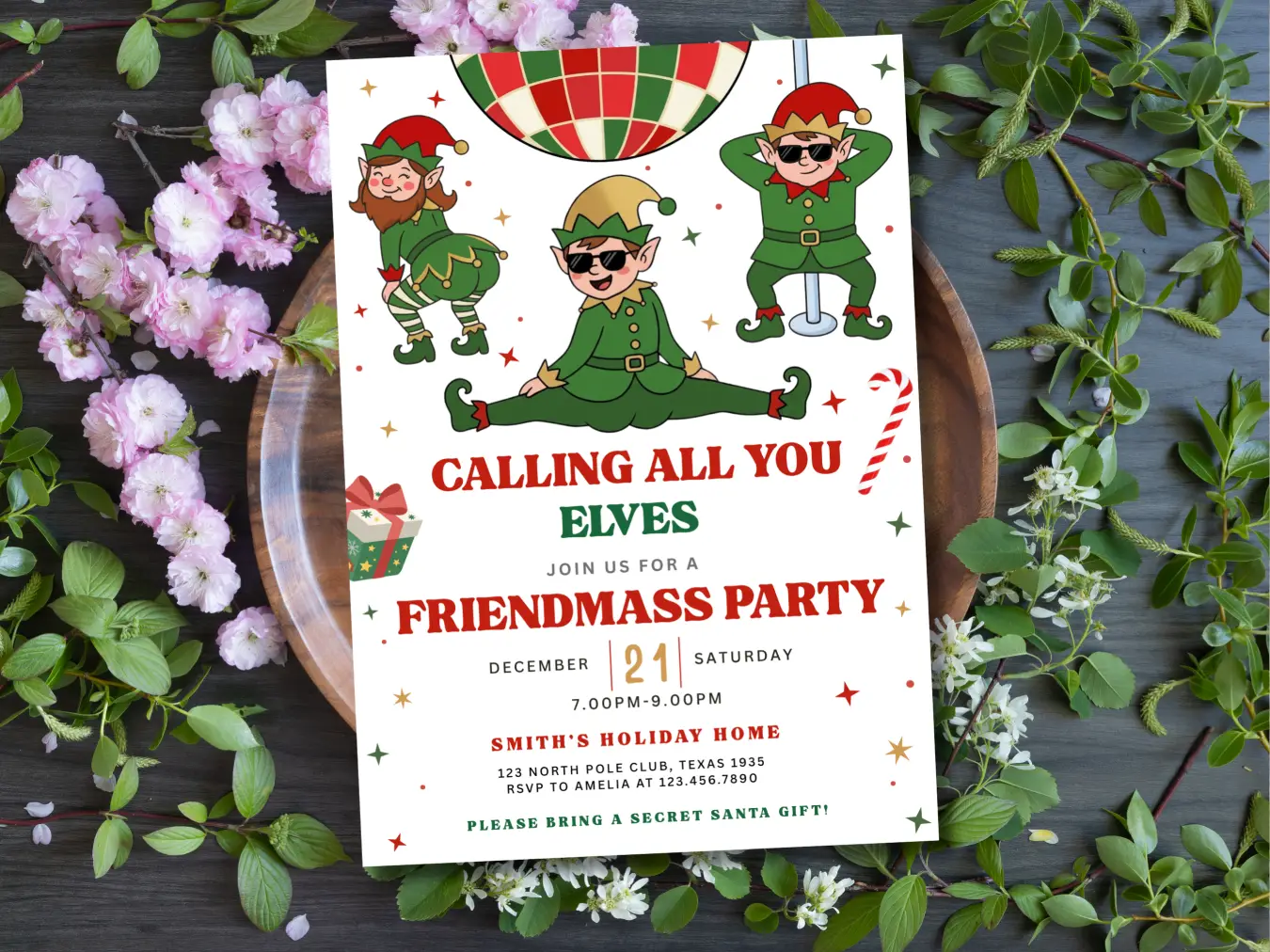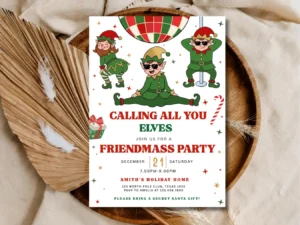 Calling All Elves Christmas Party Invitation | Holiday Kids Party Invite | Festive Celebration Template