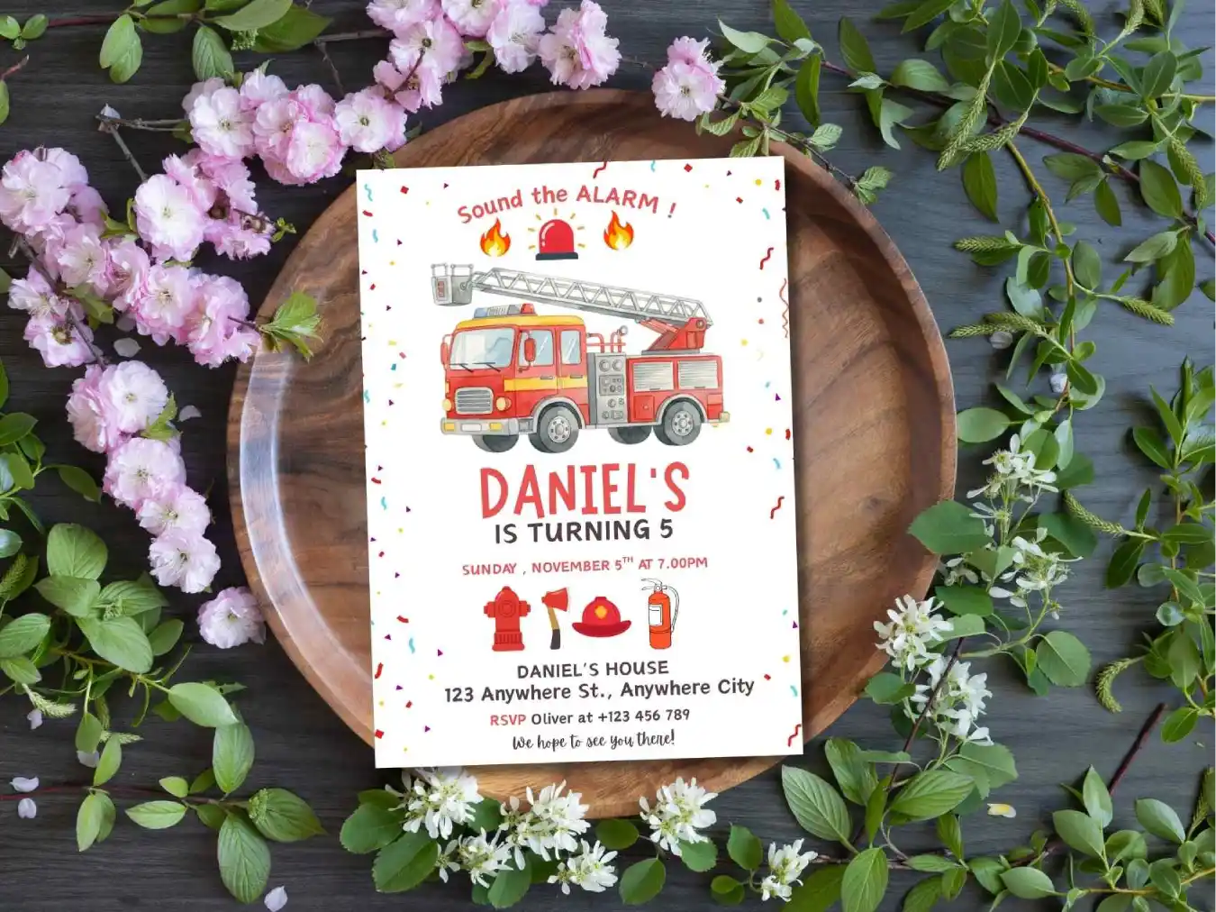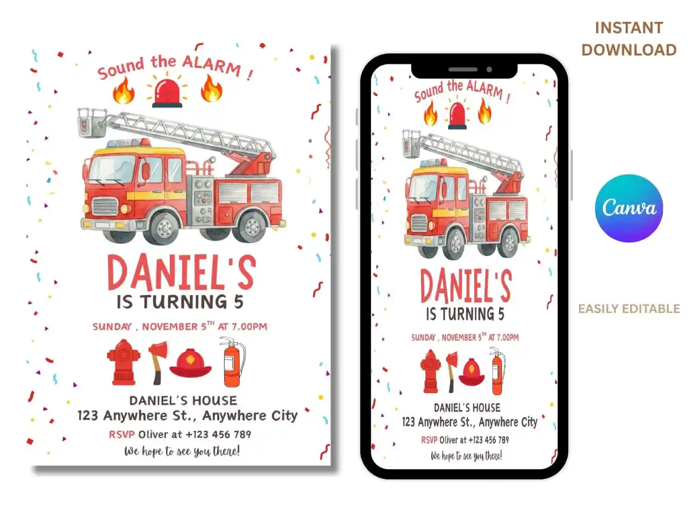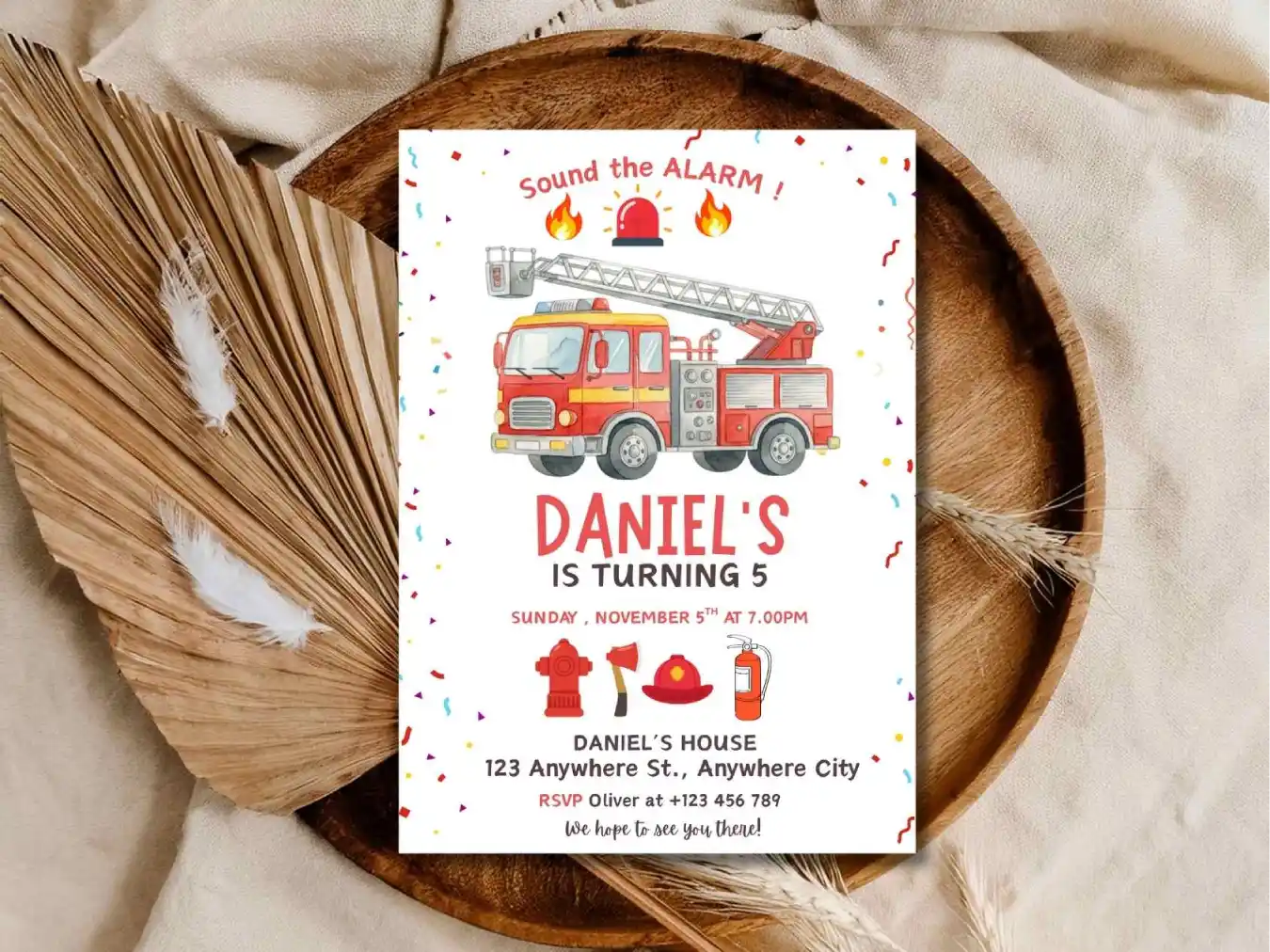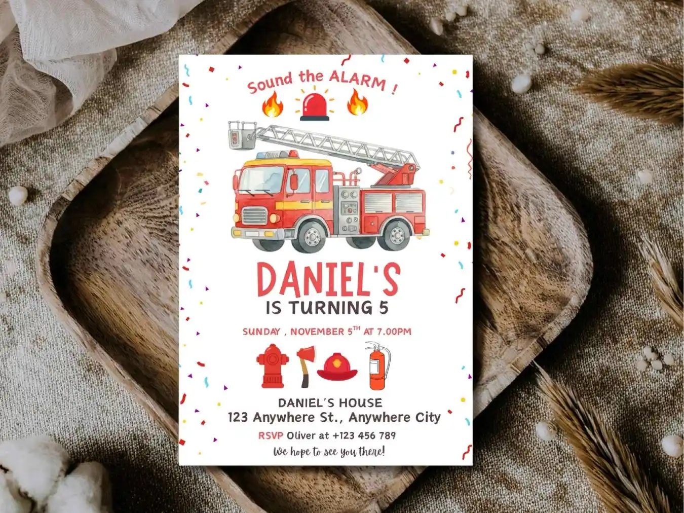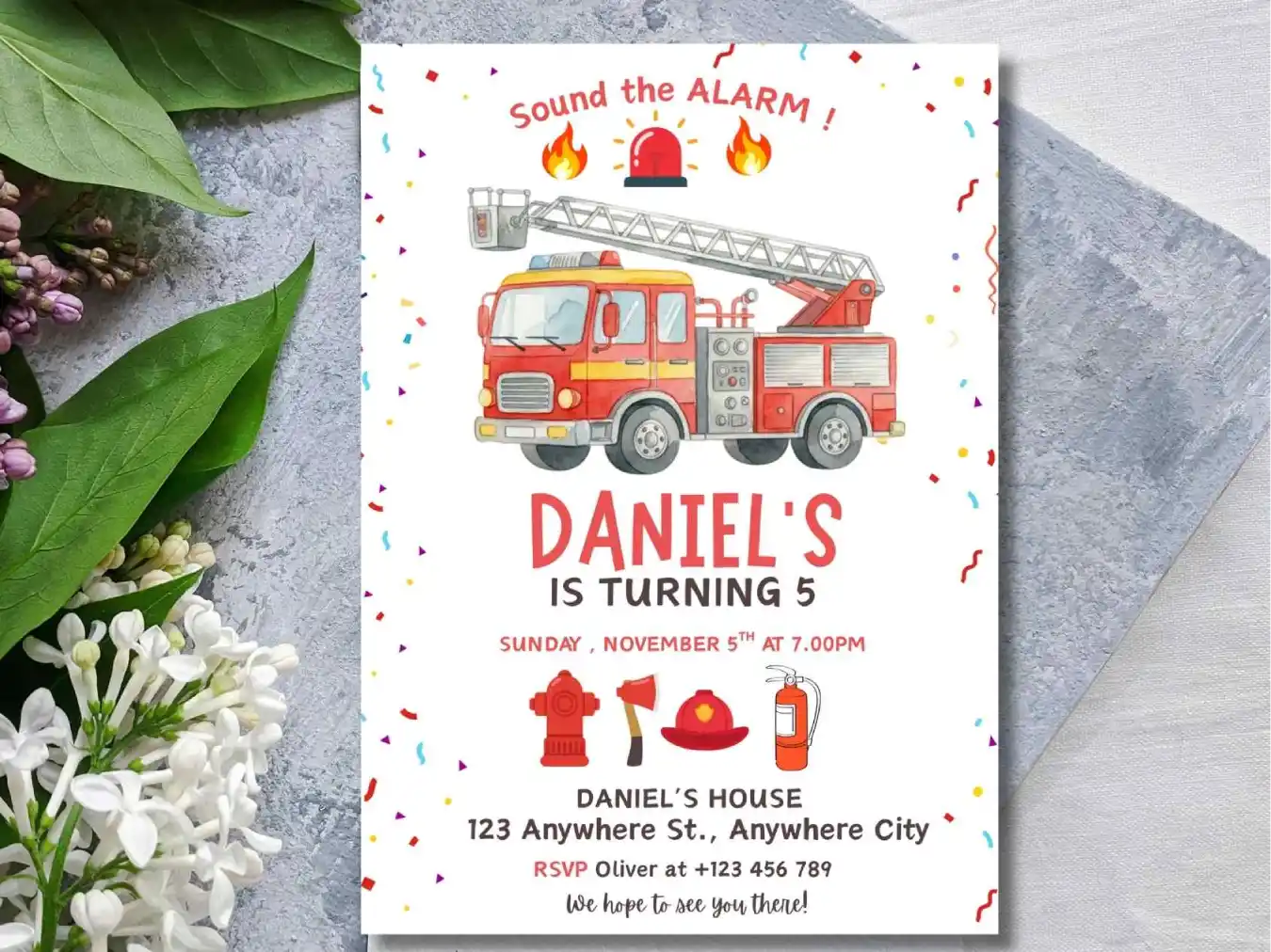 Sound the alarm for a fun-filled birthday party with a bright fire truck theme . Its Gives Charm To Your Little One Birthday Event . This Birthday Invitation Is Especially Design For Little Firefighters Who Loves Fire Engines And Action-Packed Celebrations!