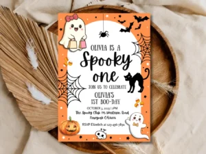 Halloween 1st Birthday Invitation | Spooky Boo-day Party Invite | Printable Ghost & Pumpkin Theme
