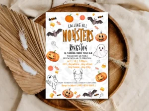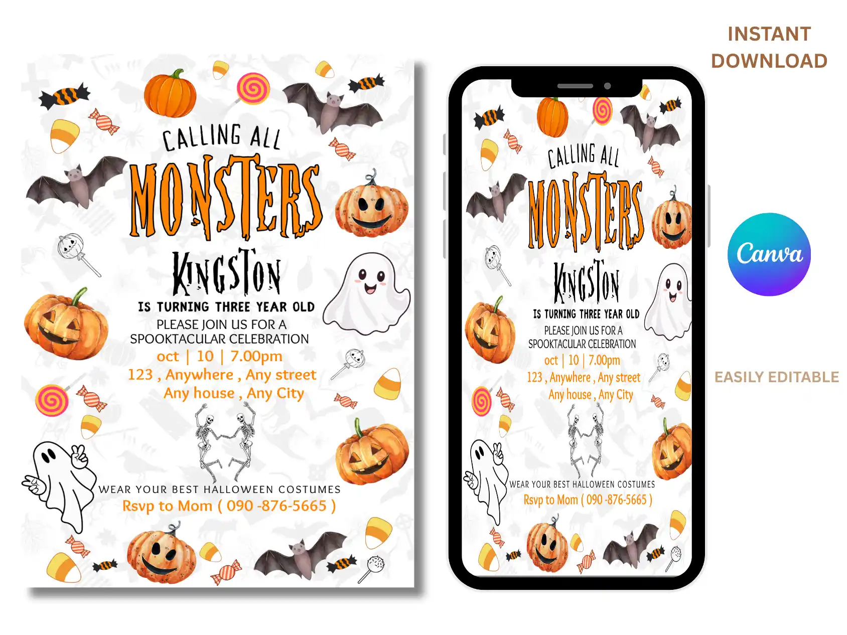 Halloween Monster Theme Birthday Invite | Digital Monster Kids 3rd Party Invitation