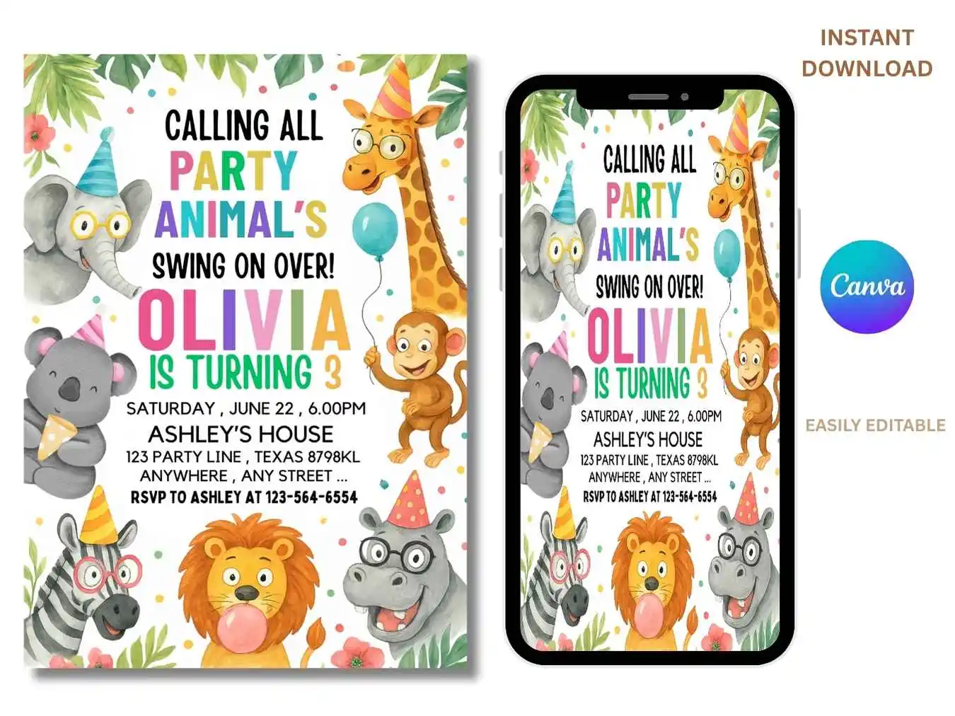 Be the first to review “Editable Jungle Party Animals 3rd Birthday Invite”