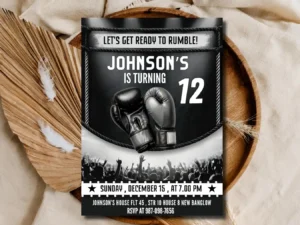 Black & Silver Boxing Birthday Invitation | Kids Fight Night Party Invite Template
