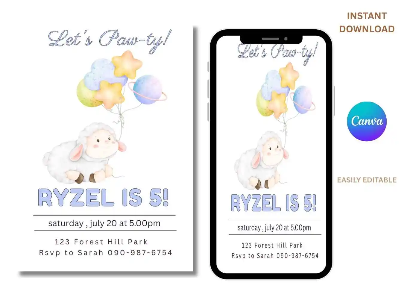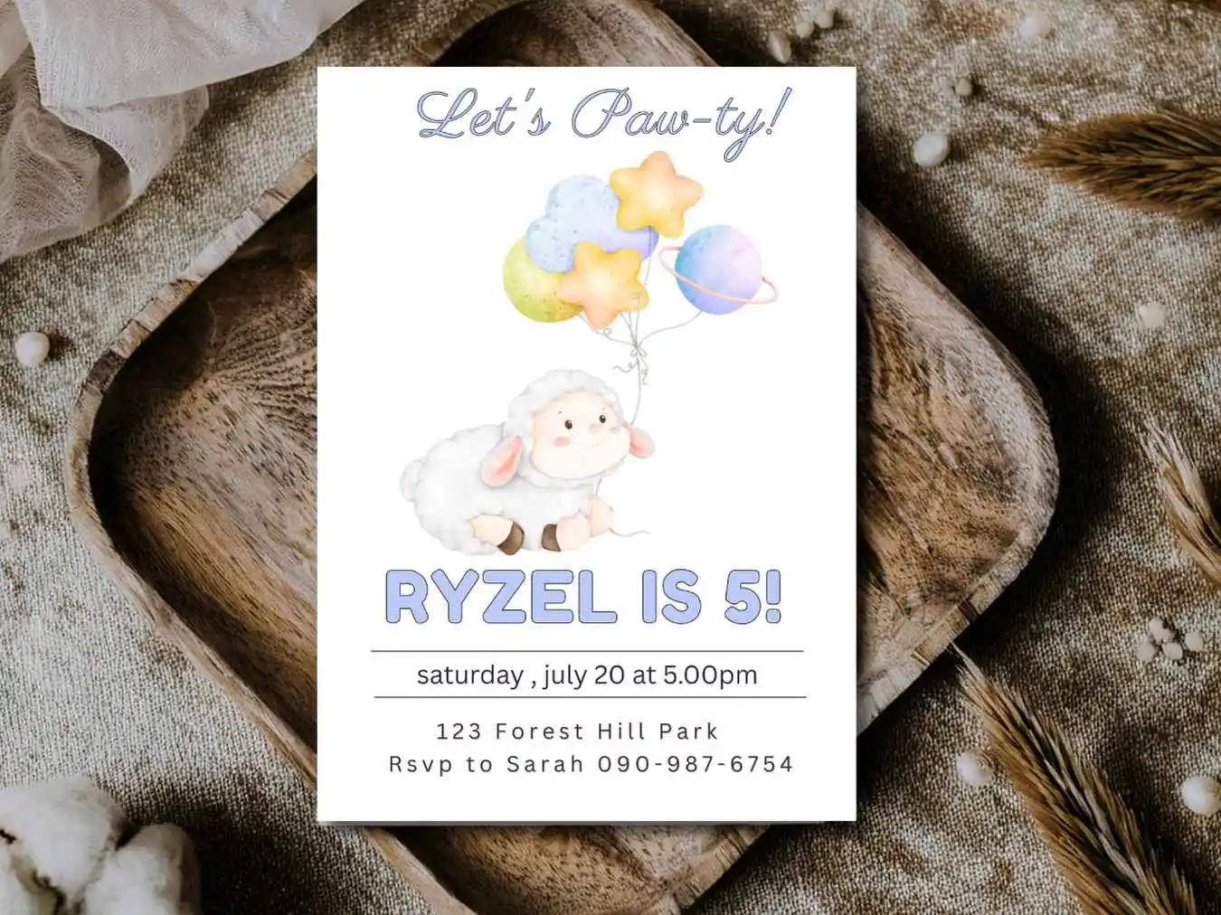 Little Lamb Birthday Invitation, Sheep Birthday Invite For Kids