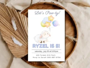 Lamb Birthday Invitation Design Is Perfect For Your Kid Who Loves Animal . This Simple Beautiful Colorful Theme Design Gives Adorable Touch To Your Young One’s Special Day , Make Your Guest Family Member Crazy With This cute Invitation And Make Your Little One’s Day More Special .
