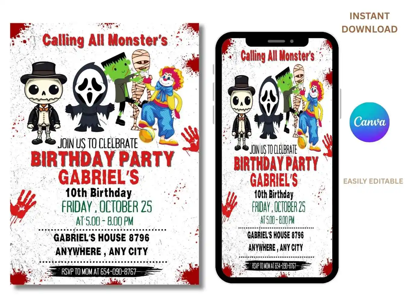 Editable Monster Theme Birthday Invite | Digital Monster 10TH Party Invitation | Instant Download Template.