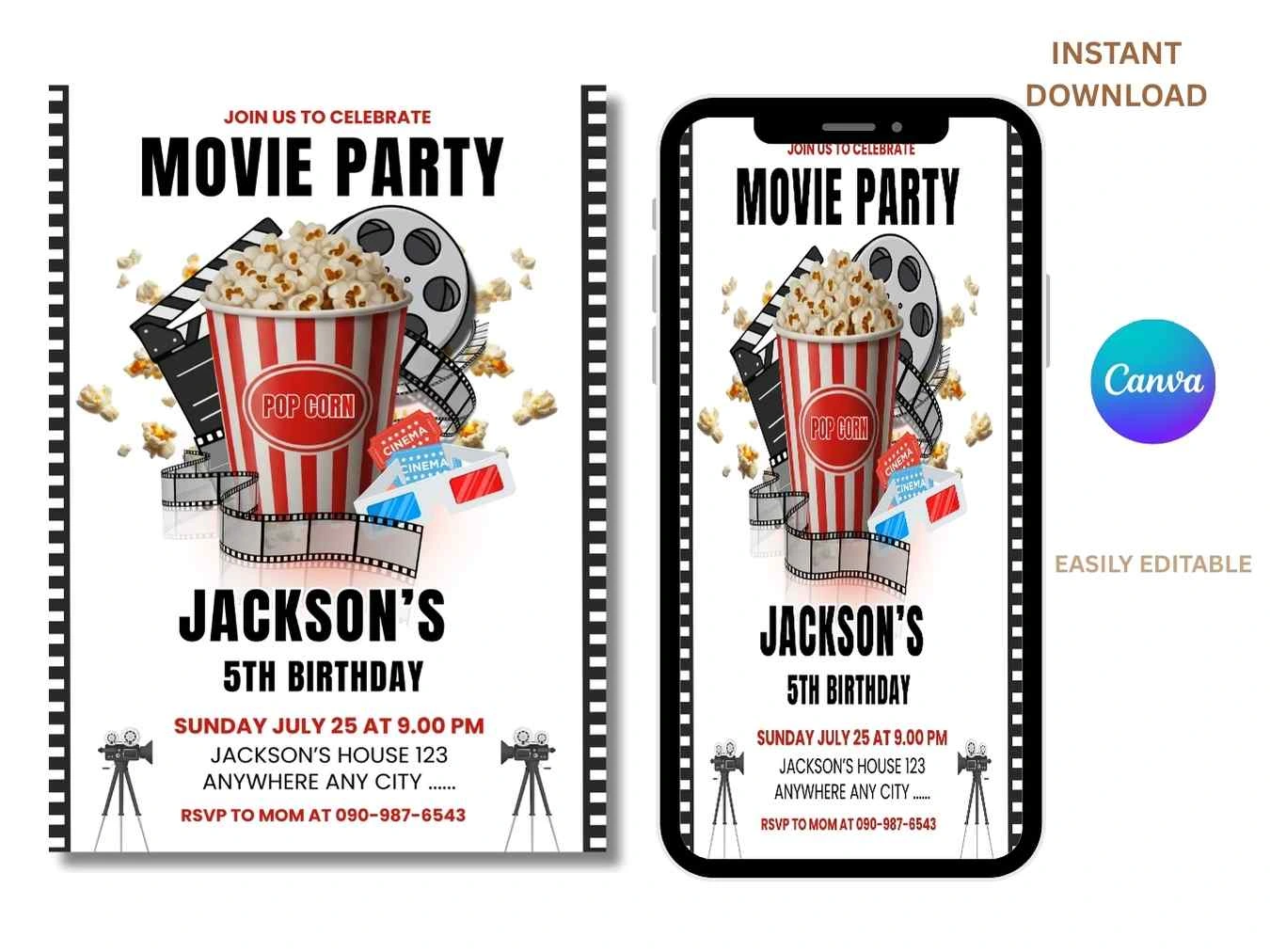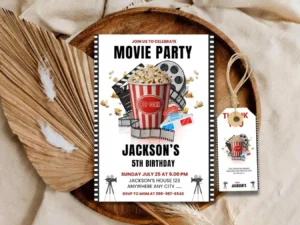 Celebrate your little one’s special day with this printable Movie Birthday Party Invitation! Perfect for a fun, film-themed birthday celebration , this digital invite is easy to customize and instant to download. Make Your Backyard Movie Night extra Special With This Charming Movie Night Invitation And Make Unforgettable Memories . Note: You will get a Digital File, No Physical item will be sent. Graphic will not be editable, You can just edit font, font color, font size etc.