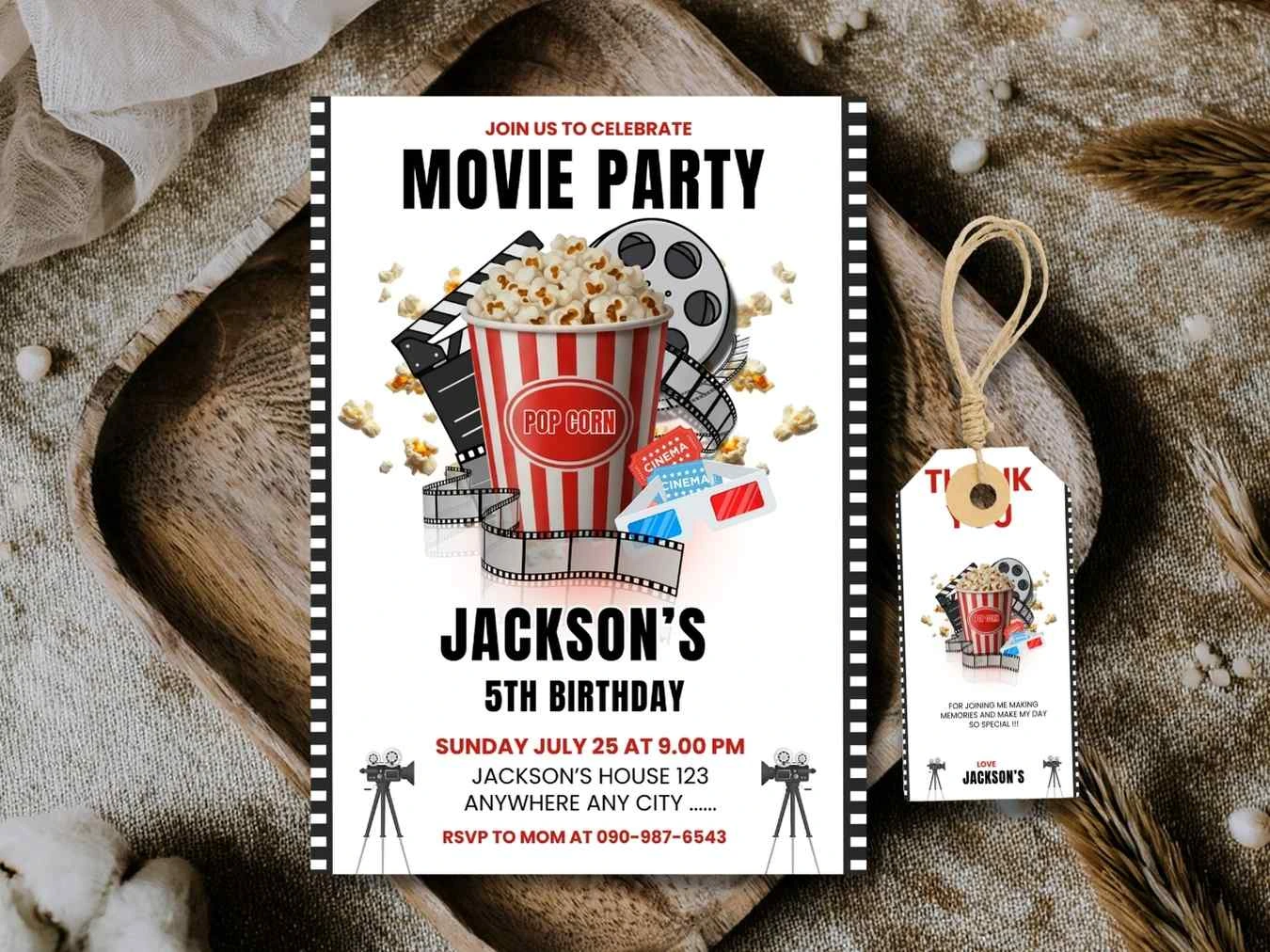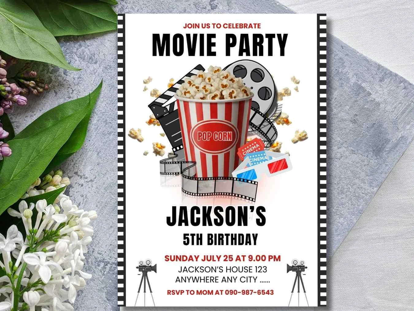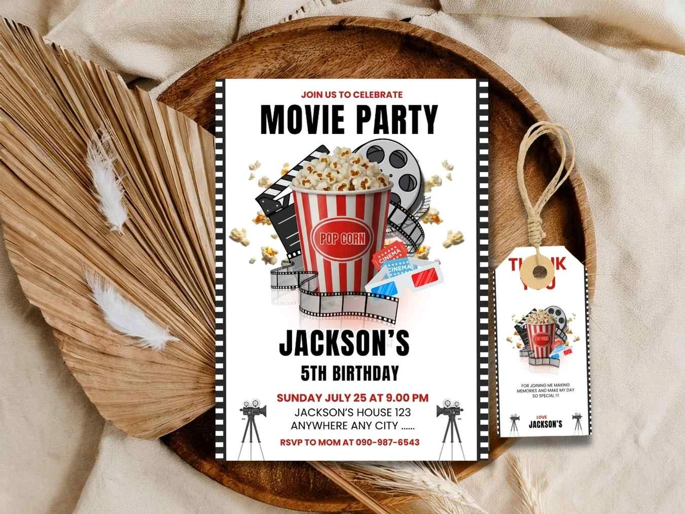 Movie Night Cinema Party invitation , Kids Birthday party Movie Night Invitation