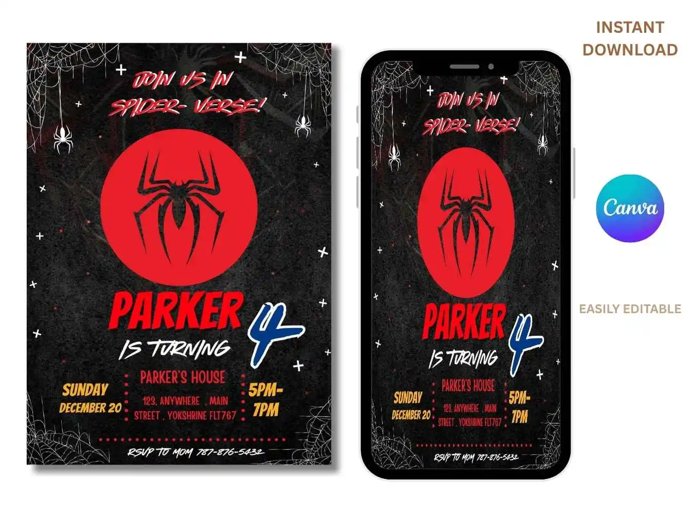 Super Hero Birthday Invitation , Spidey 4TH Birthday Invitation